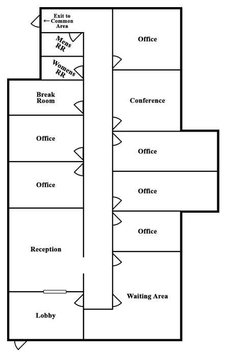 Located on Corder Road, which connects Watson Boulevard and Russell Parkway. Neighboring suites in the office park include medical, financial and tax preparation, legal, and lending service providers.