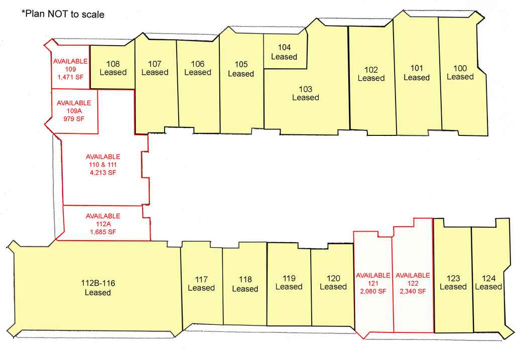Multiple flex office/warehouse suites available, most with ground level rollup doors. Please see site plan for available suites location and square footage. Some suites can be combined for a max contiguous of 8,348 SF.
