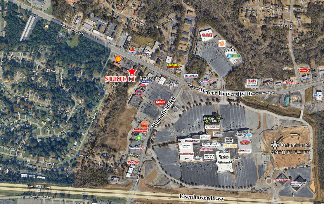 Neighbors in the area include the Macon Mall, Atrium Health Amphitheater, Rhythm & Rally Sports & Events, Home Depot, Lowe’s, Best Buy, Kroger, Aldi, and many other retail and restaurant establishments.