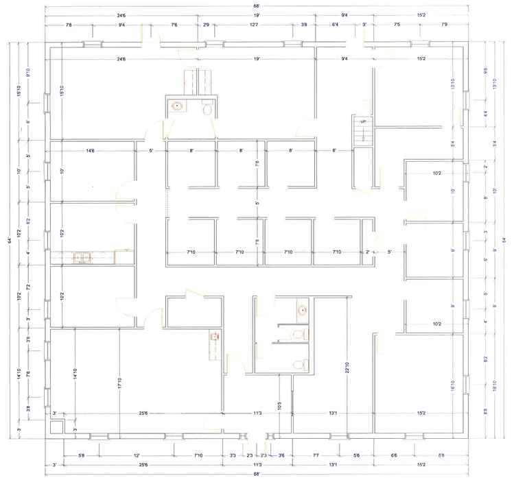 Layout provides 16 private offices, three restrooms (including two executive offices with shared executive restroom), large conference room with presentation and refreshment areas, separate break room, and multiple open spaces conducive to cooperative workspace.