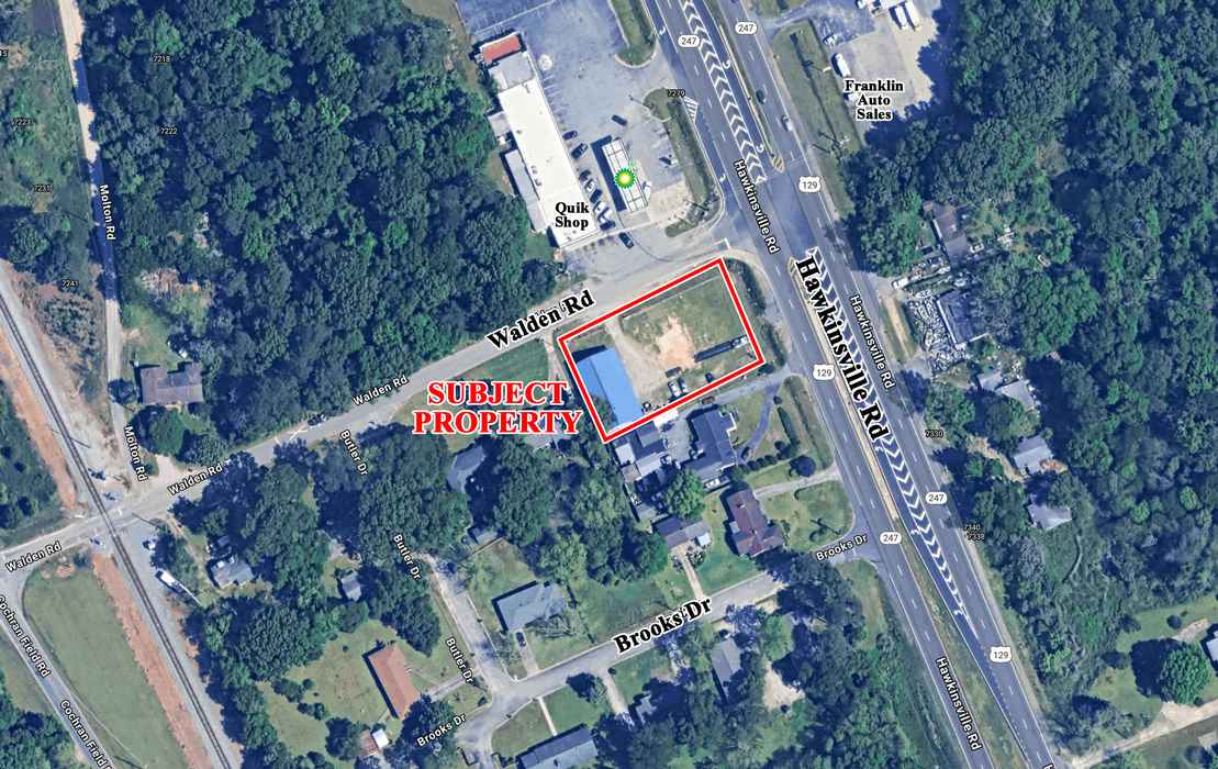 Located at the corner of Hawkinsville Road and Walden Road, on the primary corridor between Macon and Warner Robins. Nearby businesses include BP, Foster Auto Sales, Sound Source, Orkin, Bibb Machinery Sales, Air Temperature Control, and many other retail and light industrial businesses.